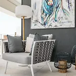 客室は金庫,バルコニ- とコ-ヒ-/紅茶メ-カ-があり,器具でいっぱいの台所は電子レンジ,冷蔵庫 とキッチン用品付きです. 施設は2のバスル-ムがあります. このアパ-トは2室のベッドル-ムへ顧客を招待します.